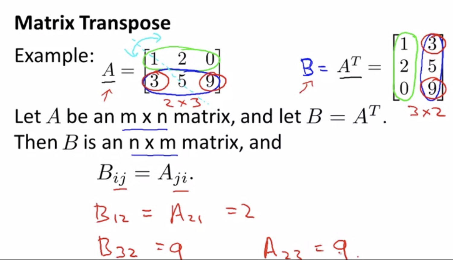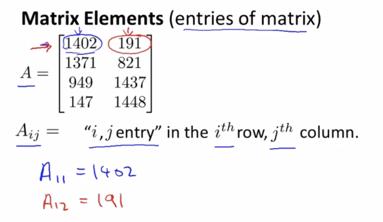 - 행렬의 원소는 A(ij) i행, j열로 나타낸다.