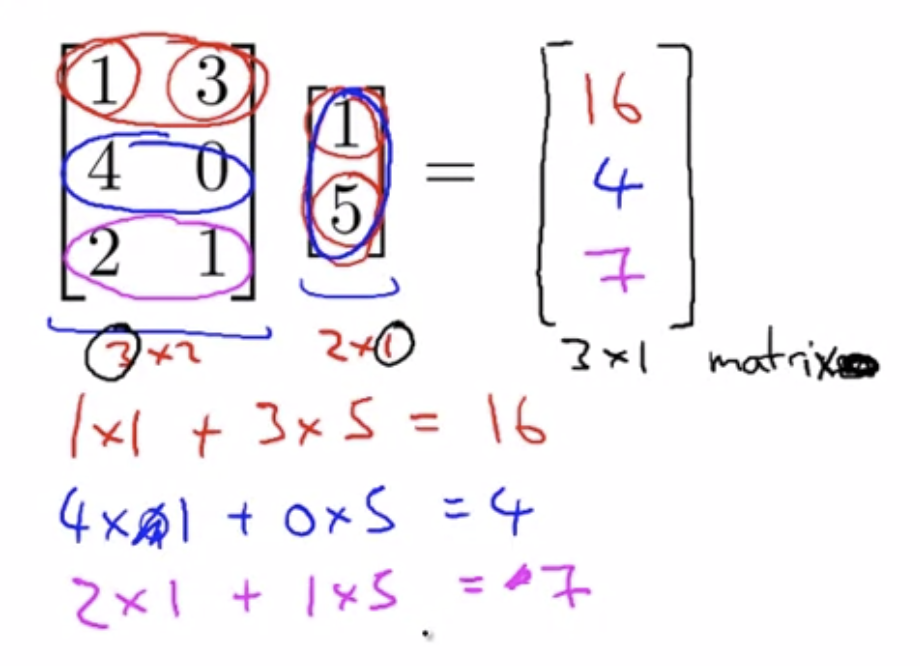 - mxn 행렬 곱하기 nx1 벡터는 mx1 벡터가 된다.