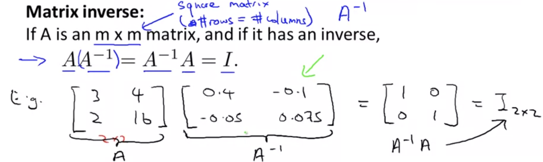 - mxm 행렬만 역행렬을 가질 수 있다. (행과 열의 수가 같은 행렬을 정방행렬이라고 부른다)