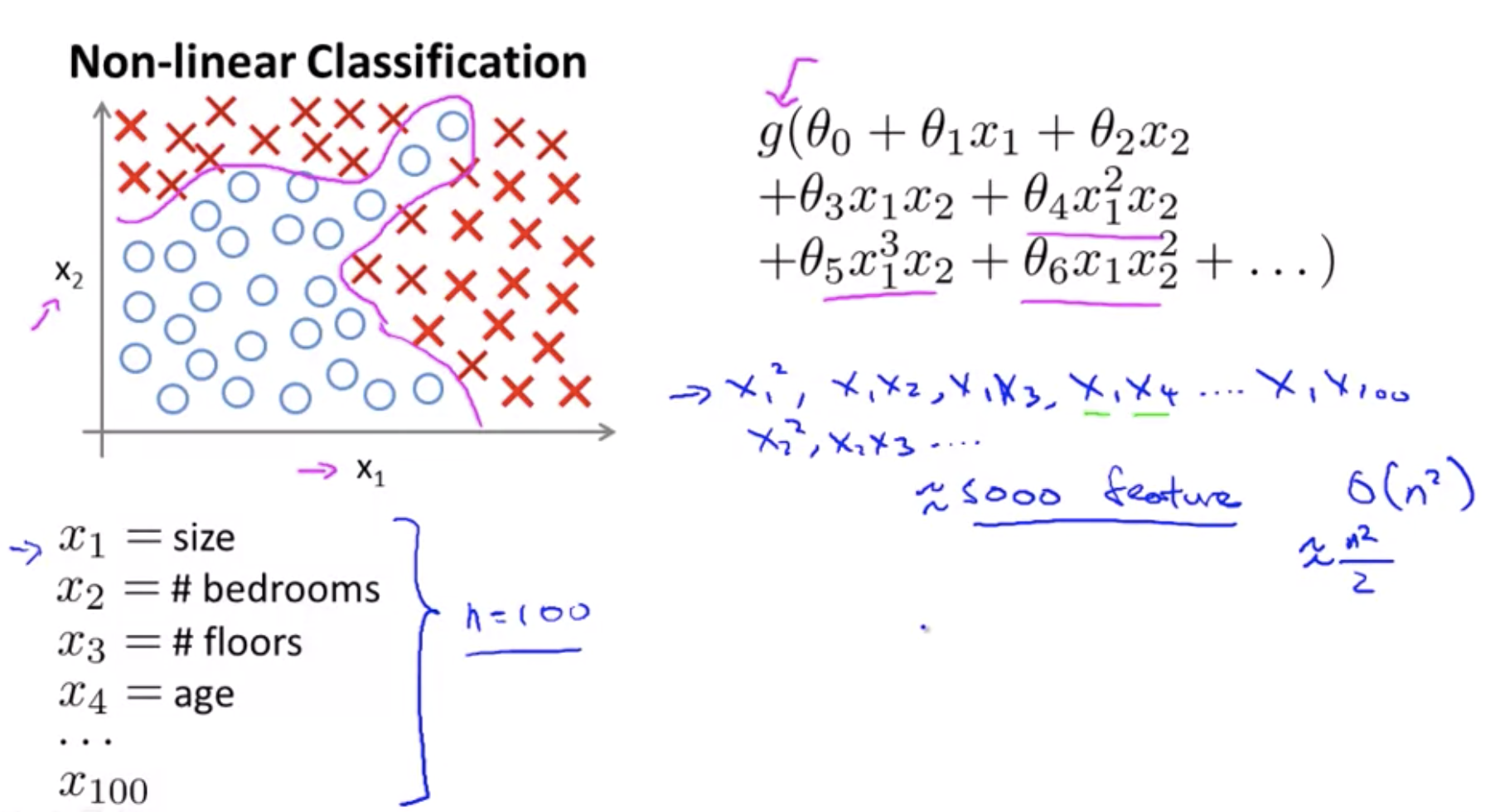- 이 경우 2차항의 수는 O(n*n) (*사실 n^2/2에 가깝다)로 증가하고 너무 오랜 시간이 걸린다. (n=피쳐의 수) -> 과적합 발생.