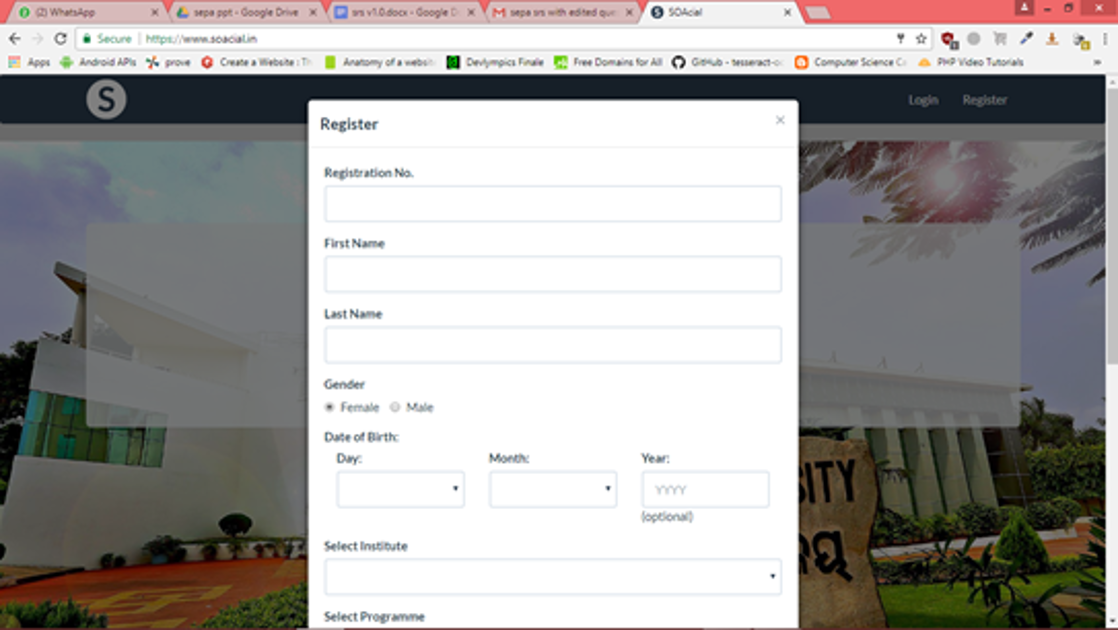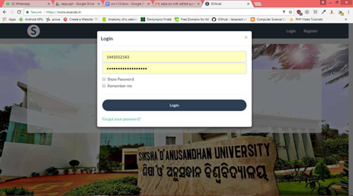 SOAcial is a website, designed for the students of SOA University