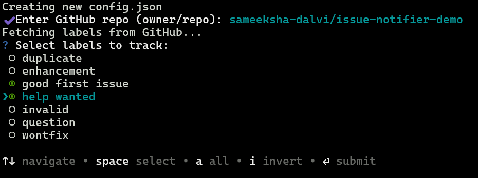 Follow the prompts to select your repository and issue labels.