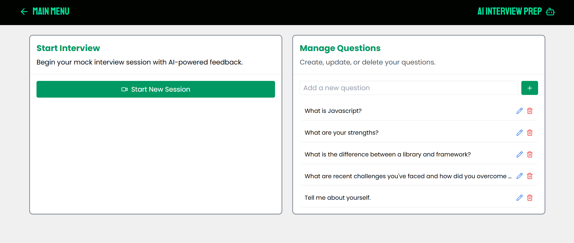 - Detailed Feedback Generation: Actionable insights (rating and feedback) for better preparation.