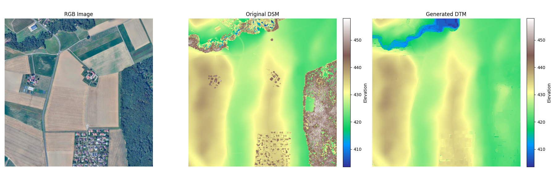 dsm2dtm is a robust, python library for extracting bare earth Digital Terrain Models (DTM) from Digital Surface Models (DSM). It effectively removes non-ground features like buildings, vegetation, and cars, leaving only the underlying terrain.