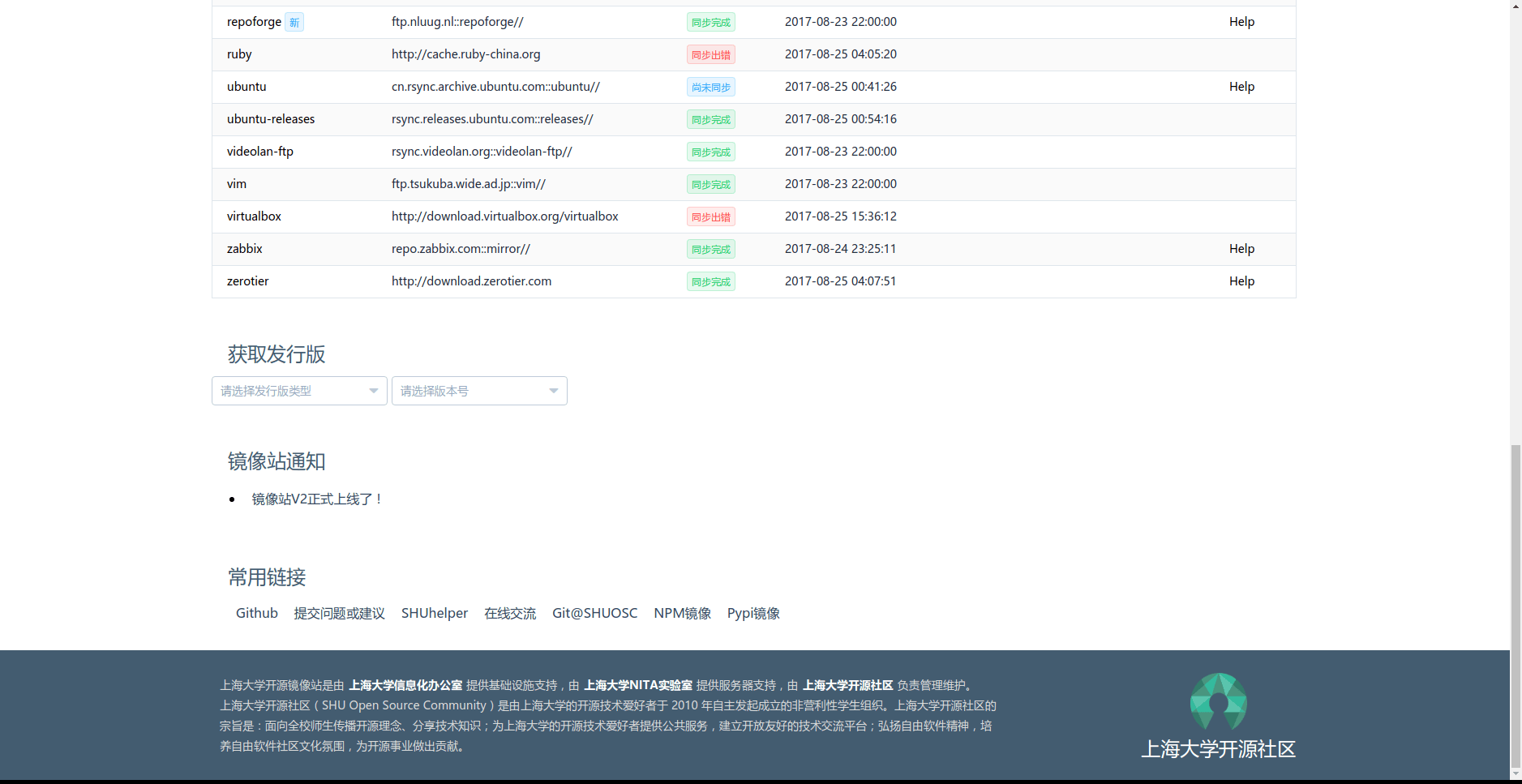 (镜像站) http://mirrors.shu.edu.cn (校园网,IPv4)