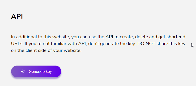 https://kutt.it/after signing up (Settings page) -