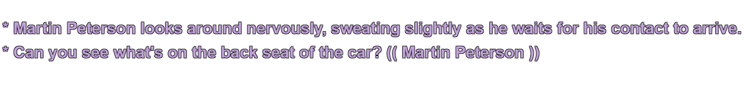 * Can you see what's on the back seat of the car? (( Martin Peterson ))