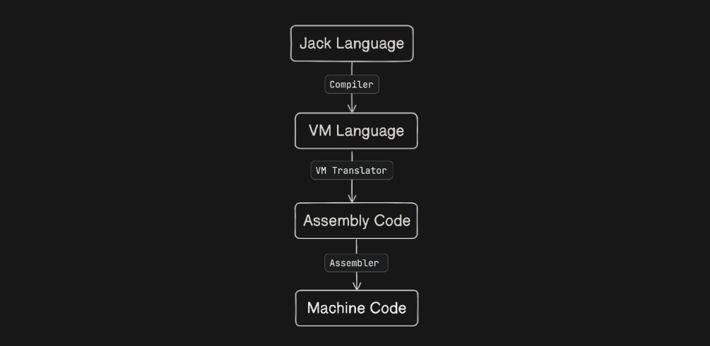 .jackfiles to.vm,.asm, and.hackformats. - Converts